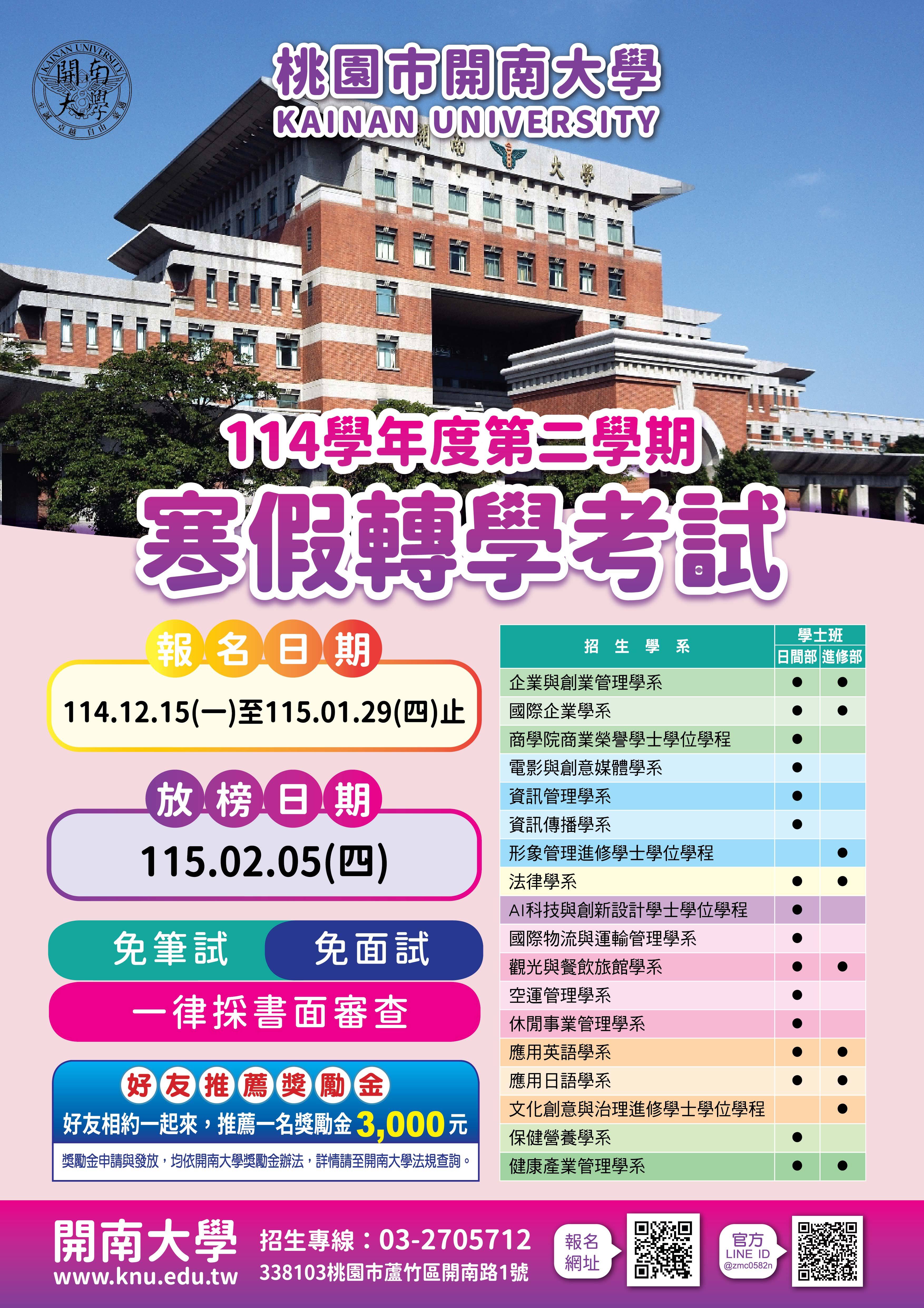 【轉學考試】114學年度第二學期轉學考招生簡章