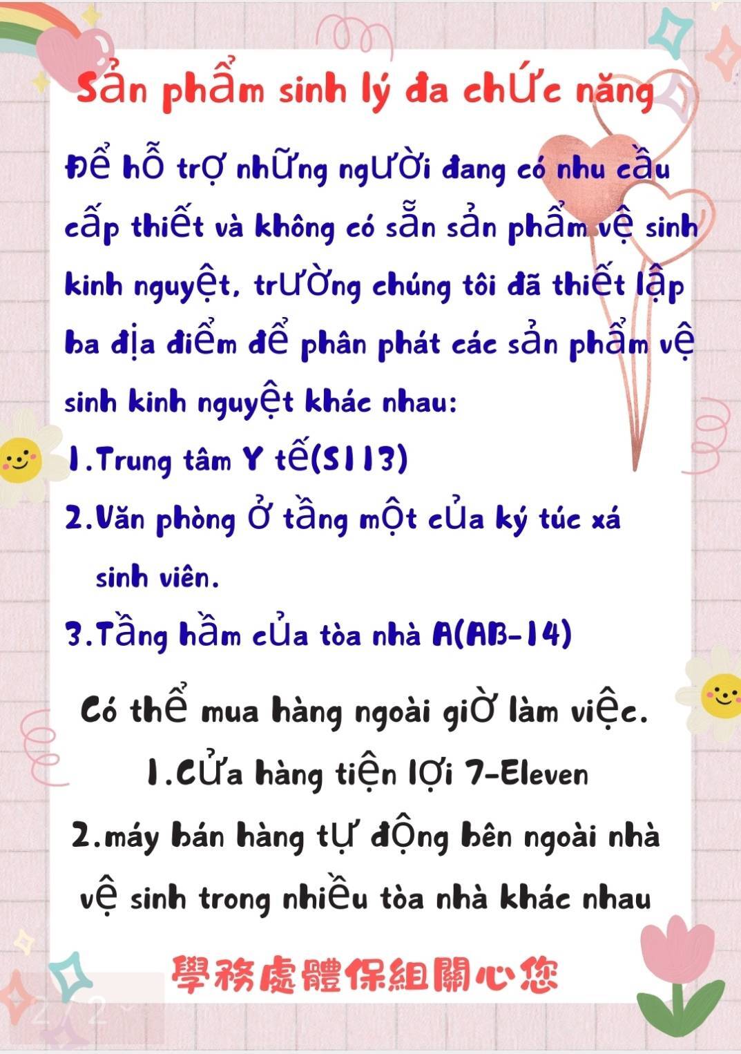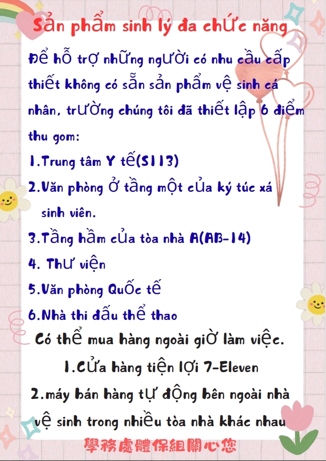 【體保組公告】多元生理用品領用Sản phẩm sinh lý đa chức năng