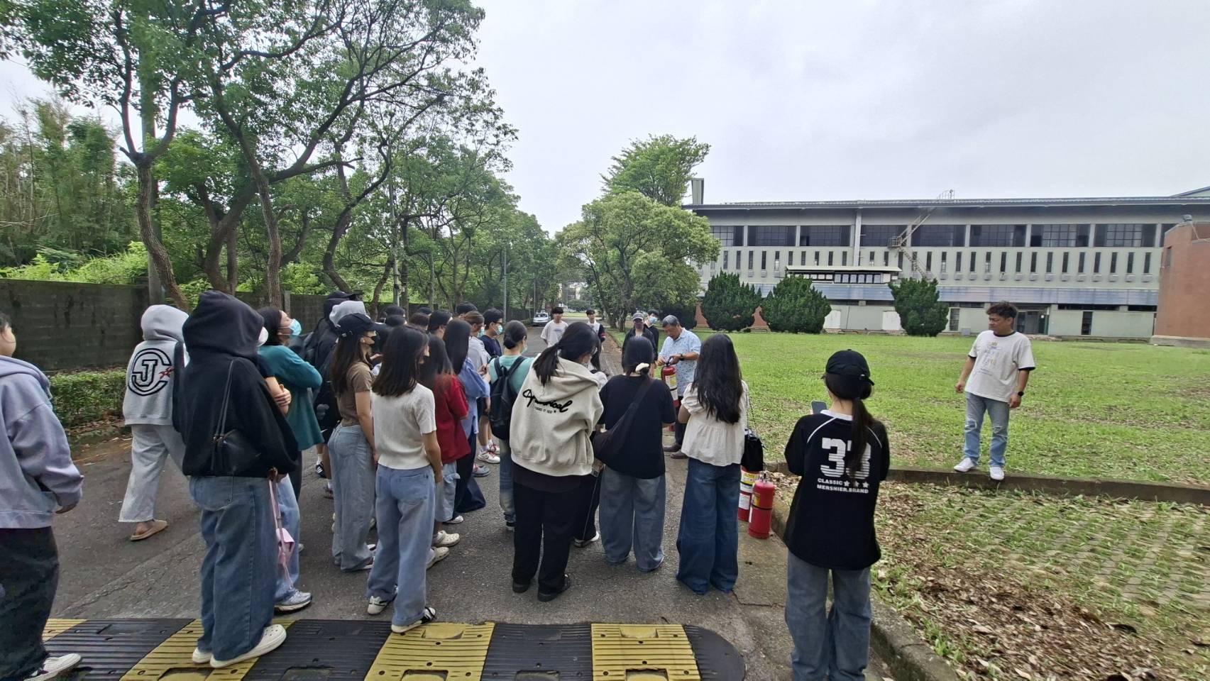 本次演練由專業人員現場指導,進行滅火器使用步驟講解與實際操作示範,參與同學皆能親身體驗操作過程,增進實務應用能力。